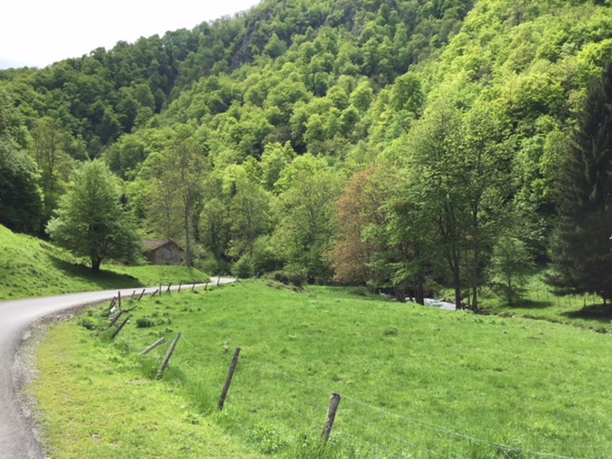 L’ascension se poursuit en direction des Chalets Saint Nérée (790m) que l’on traverse au kilomètre 6 qui accueillent depuis 1955 de jeunes Hauts Viennois dans le cadre de leurs vacances. Au décours de ce lieu de villégiature, la route oblique vers le sud et franchit cet affluent de la Garonne par le pont des granges de Crouhens au kilomètre 7. Tout au long de la remontée de cette vallée nommée la Barousse, les amoureux du vélo croisent les amoureux de la pêche à la truite dans un décor somptueux aux nombreuses nuances de vert favorisées par d’importantes précipitations.